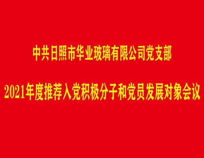 2021年是中國共產黨建黨100周年,為把更多的優秀分子吸收到黨組織中來,激勵廣大員工把愛黨、信黨、跟黨走的政治熱情轉化為工作的強大動力,中共日照市華業玻璃有限公司黨支部高度重視,將2021年推薦入黨積極分子和發展黨員工作作為重要政治任務,抓緊抓實。