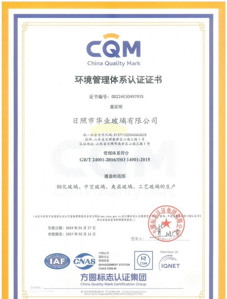 環境管理體系認證證書
