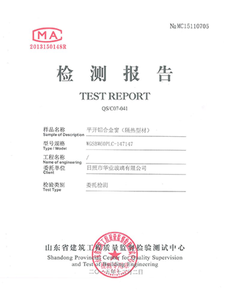 平開鋁合金窗檢測報告